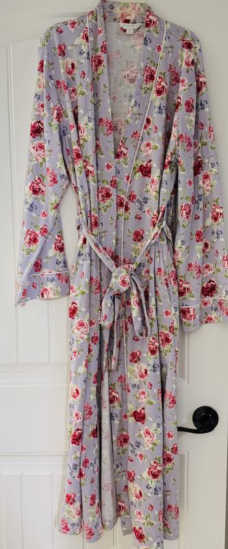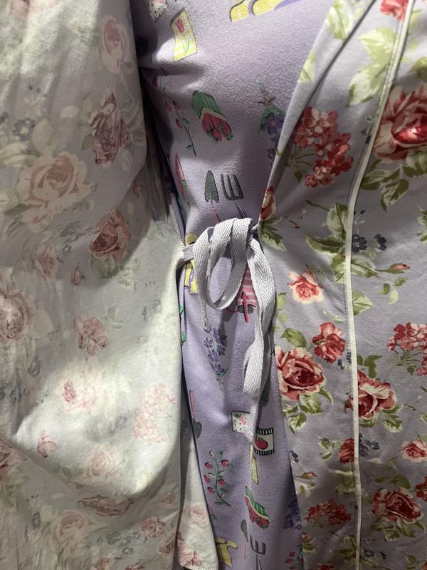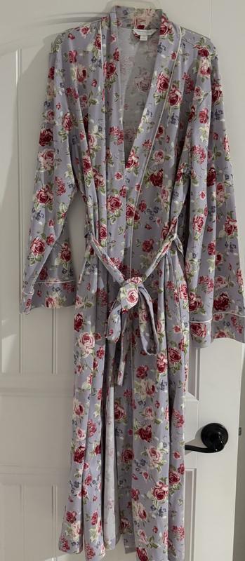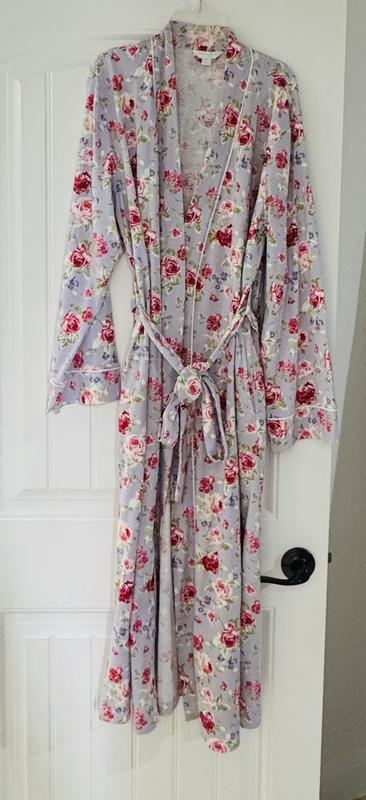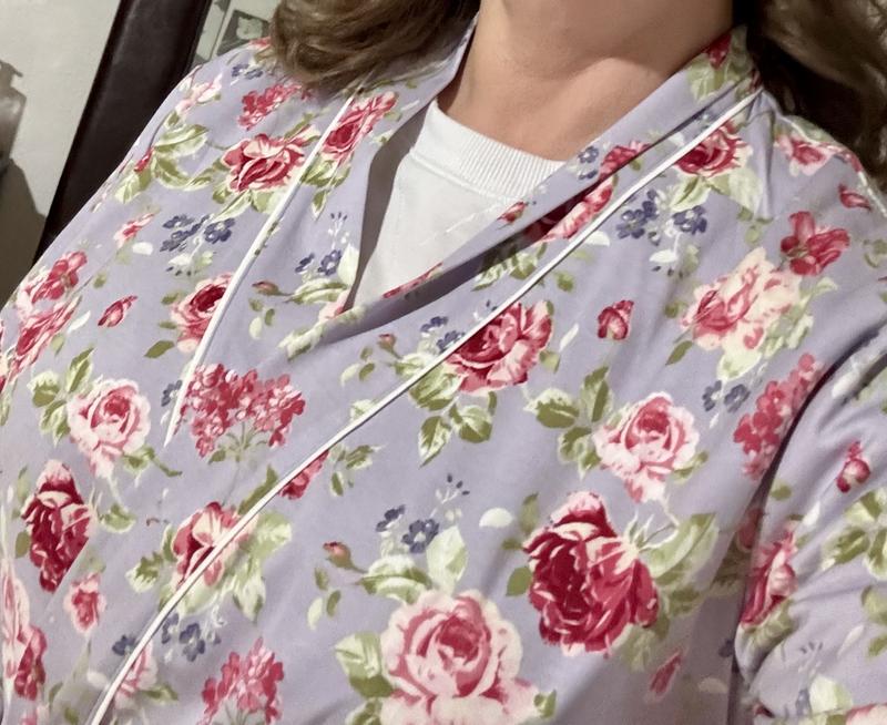 The pink roses robe is gorgeous and feels luxurious. However, I was looking for a medium weight “true” (?) cotton robe that would be absorbent after a shower. The website and label both say 100% cotton but this is a heavy, almost satiny material. For me, it’s too hot and heavy to be an-after shower robe. It would be better as a lounging robe.