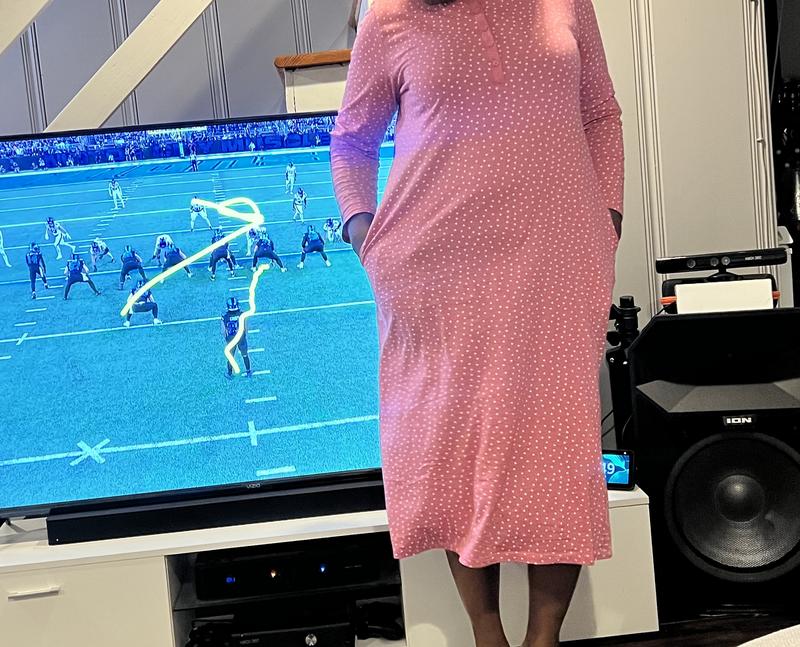 I actually use it as a lounge when I first get out of bed so I can grab something and put it on and go around and get the coffee and wash my face before I put my clothes on. It’s really comfy and it covers down to your ankle, so it keeps you warm.