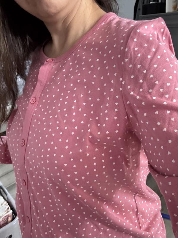 Very cute pajamas, I bet I have worn them 100 times! I only wished I would have sized down to M they were out of L so I bought XL and they are way too big, but still comfy. They do Not Shrink!