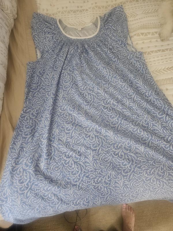 Such a comfortable nightgown. I was looking for something without irritating seams or waistbands. This is perfect. A nice weight cotton fabric, not too heavy and not too shear. And I found it on sale