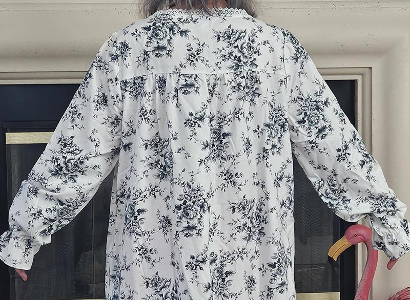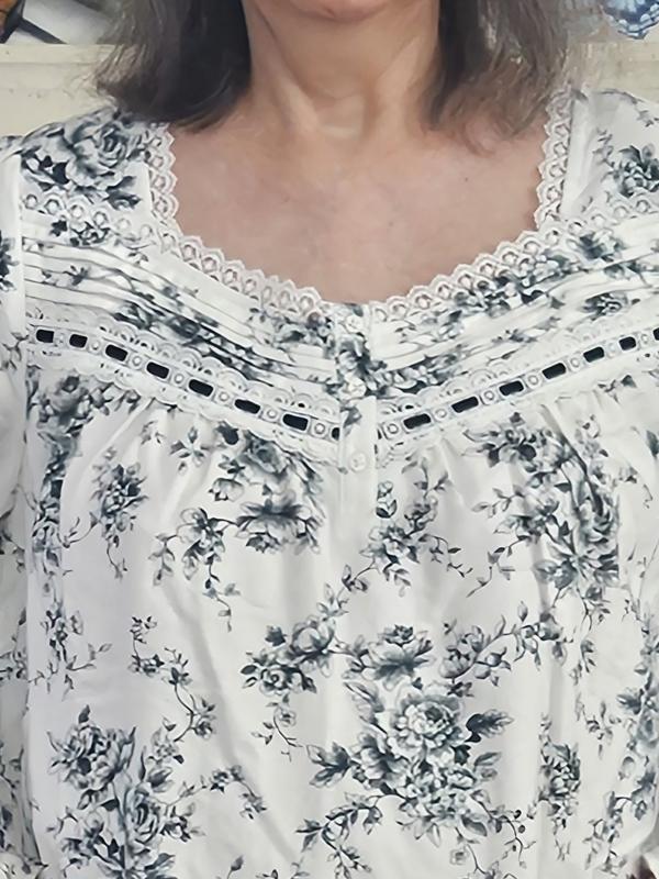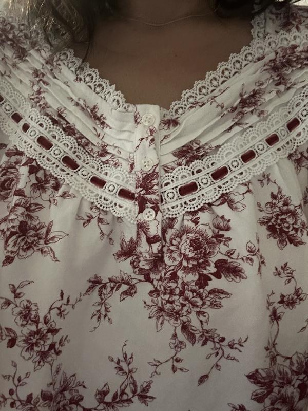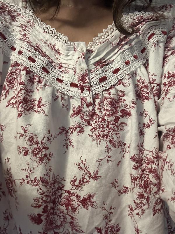 Women's Floral Flannel Henley Nightgown, Created for Macy's