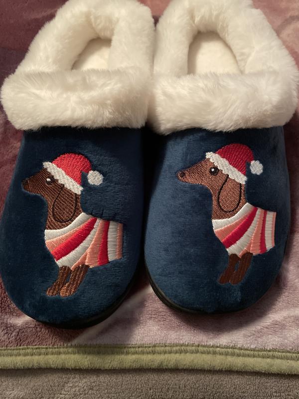 I love everything about these slippers— the soft material, the powder blue color, the pretty silver snowflakes, the warm fleece inside. They fit well and are comfortable. So happy I was able to get these slippers in my size.