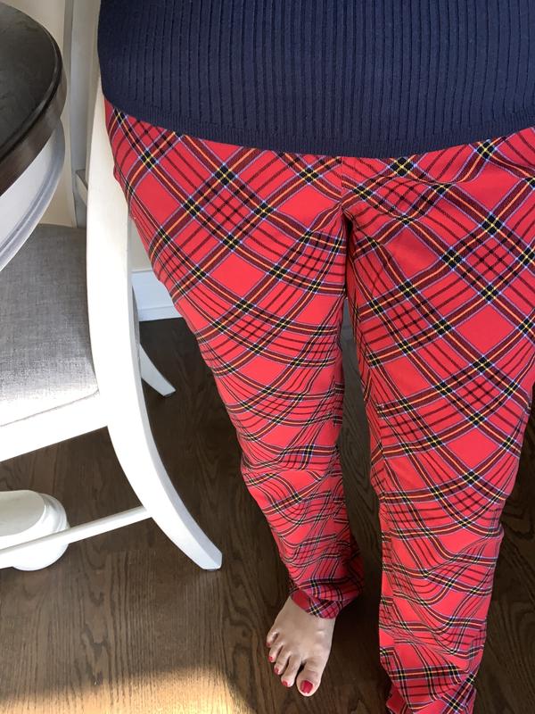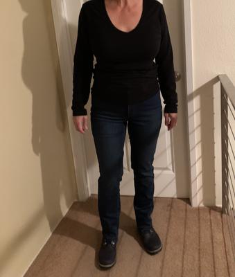 Didn’t fit right, I have the charter club leopard jeans size 14 fit great. These waist fits but baggy in tummy and hips also going to have to have 3-4” cut off hem. Very disappointed and won’t buy this again unless am in store where I can try on.