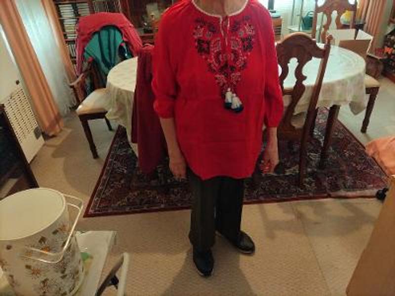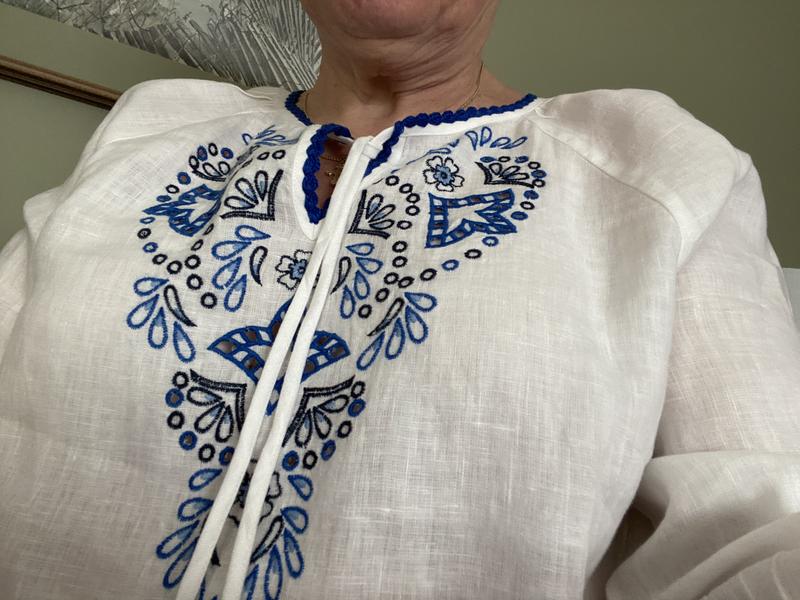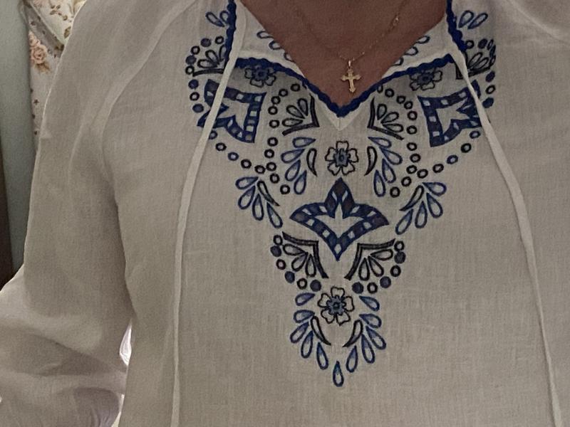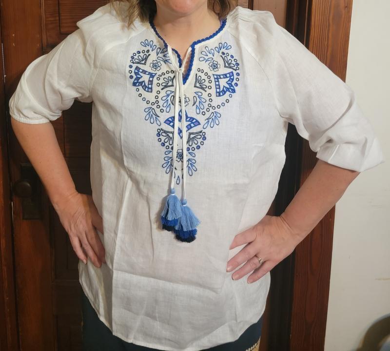 Beautifully made, quality fabric but overwhelmed me. Ordered a Large, because Medium wasn't available and regrettably had to return. Usually wear a size 10/12.