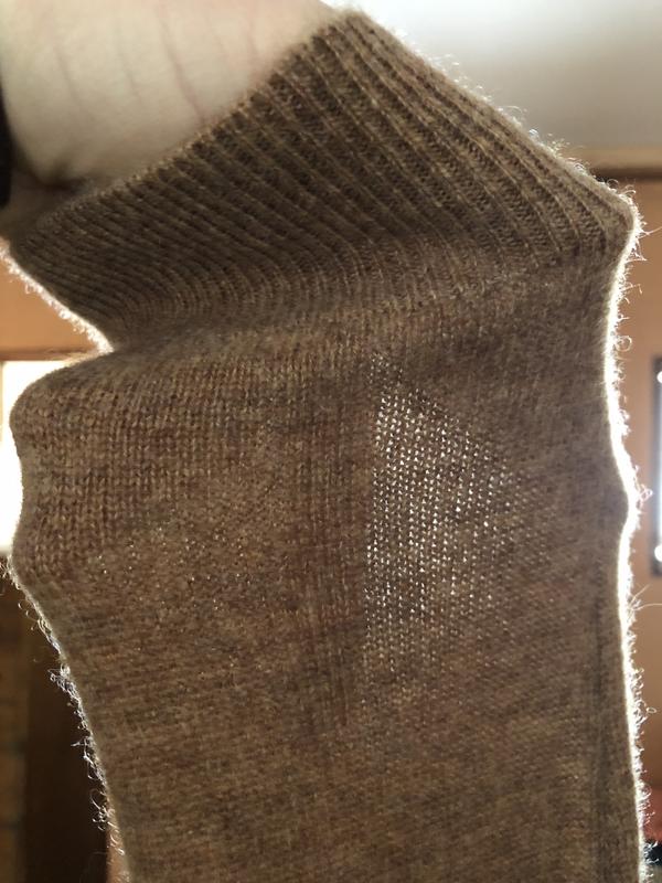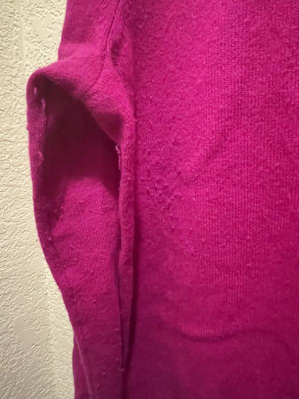 Love the crewneck and fit of this sweater. Other reviews state thin material however, I find this cashmere softer than other vendors and has a beautiful hand. Colors are stunning. Ordered three. Long sleeves perfect for cooler weather. Five stars.