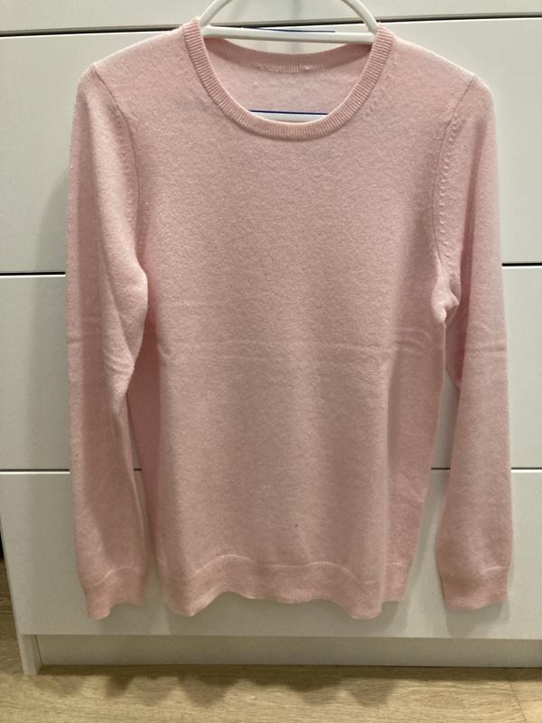 Love the crewneck and fit of this sweater. Other reviews state thin material however, I find this cashmere softer than other vendors and has a beautiful hand. Colors are stunning. Ordered three. Long sleeves perfect for cooler weather. Five stars.