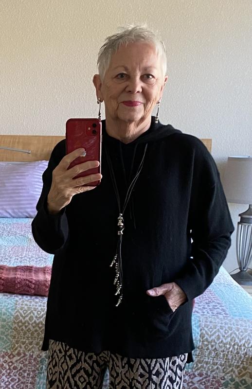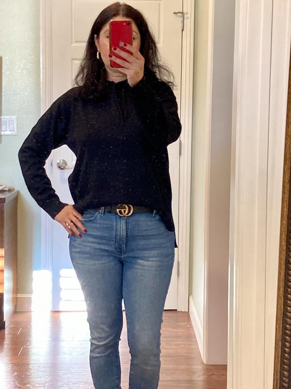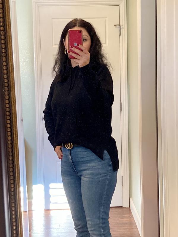 The sweater arrived with a hole in it. I had to return it. I was disappointed because it fit beautifully and was very soft. I ordered another one which hasn’t arrived yet. Hopefully I will not be disappointed again.