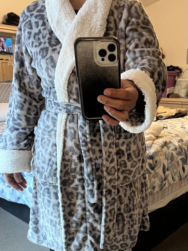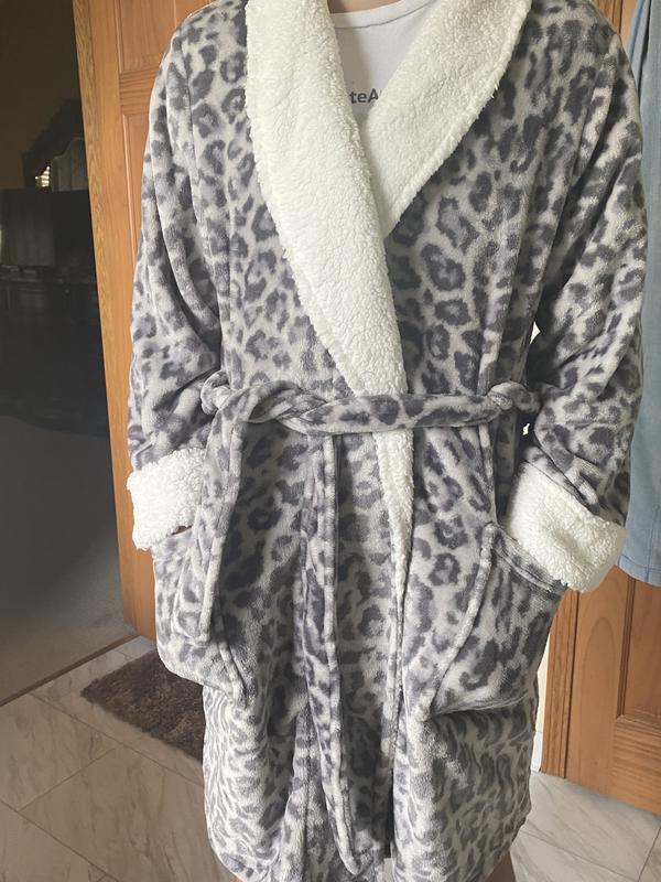 I love this robe. It is so cozy and lightweight plus the Snow Leopard is my favorite animal. Buy it!!