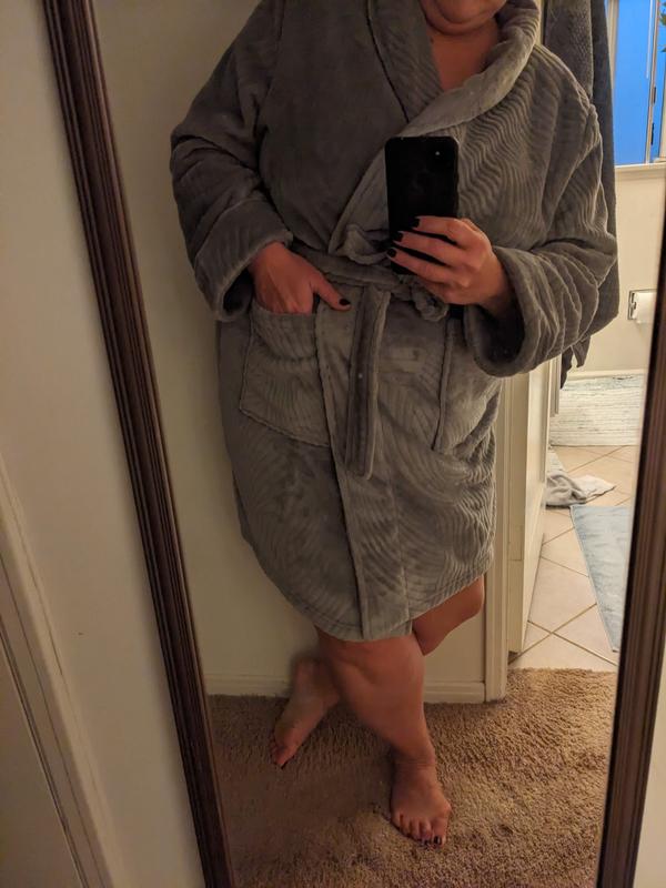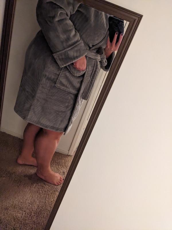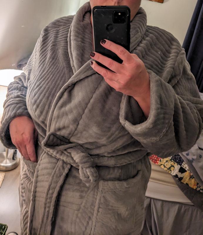 Received and was so pleased with the beautiful robe. It is really soft, and a very attractive shade of gray. Very cozy, used it while I was visiting family in Ga. When I got home, I immediately launder it, as instructed, looks like it was brand new, and never worn. Would highly recommend purchasing for yourself, or a fantastic gift.