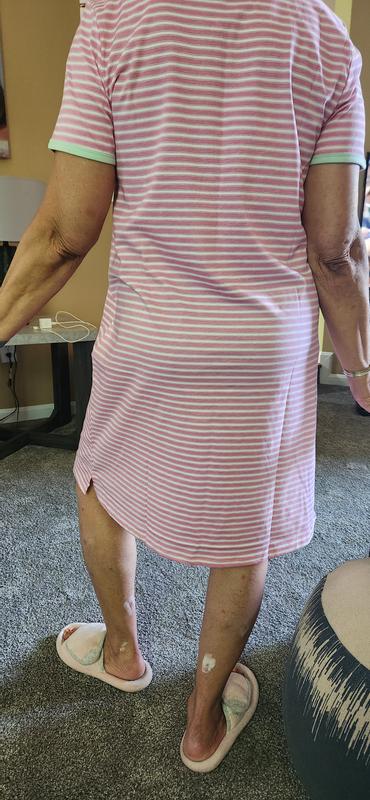 great cotton night shirt. Soft breathable cotton. Mine is pink and white stripe