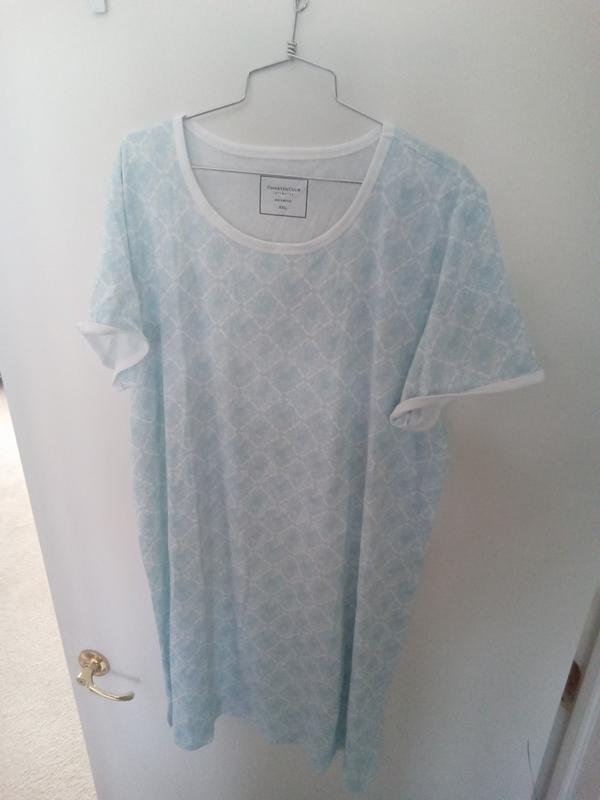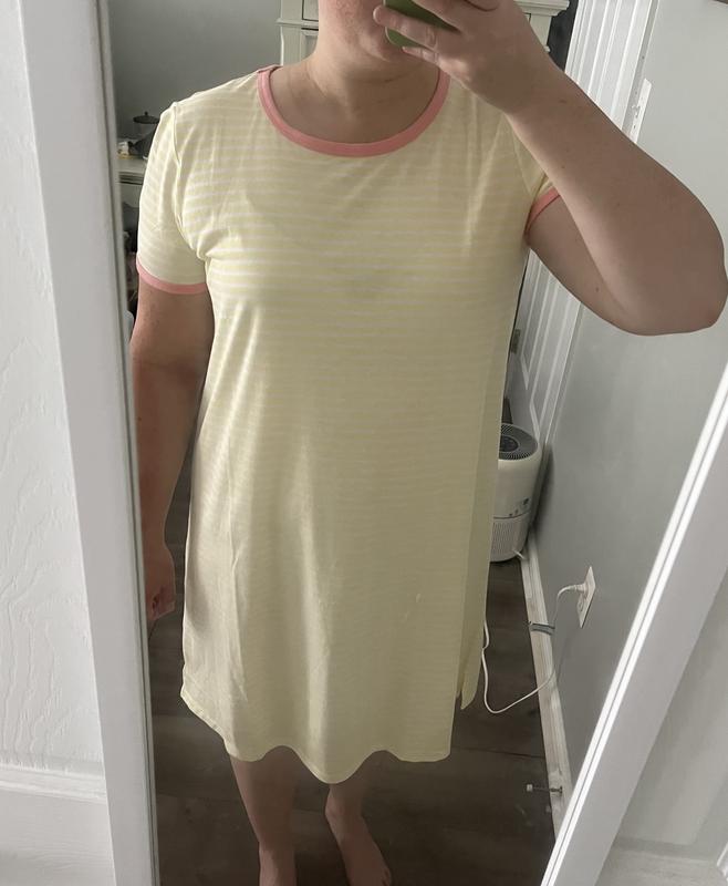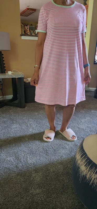 Nice sleep shirt. Looks like an oversized T shirt. I bought the pink/green stripe.