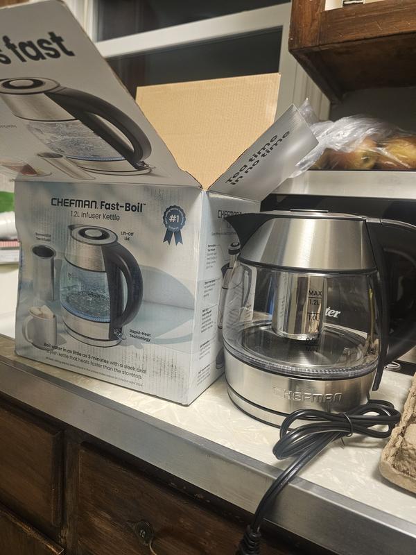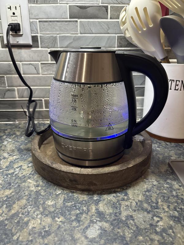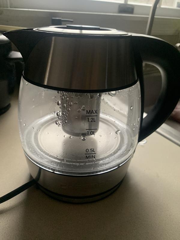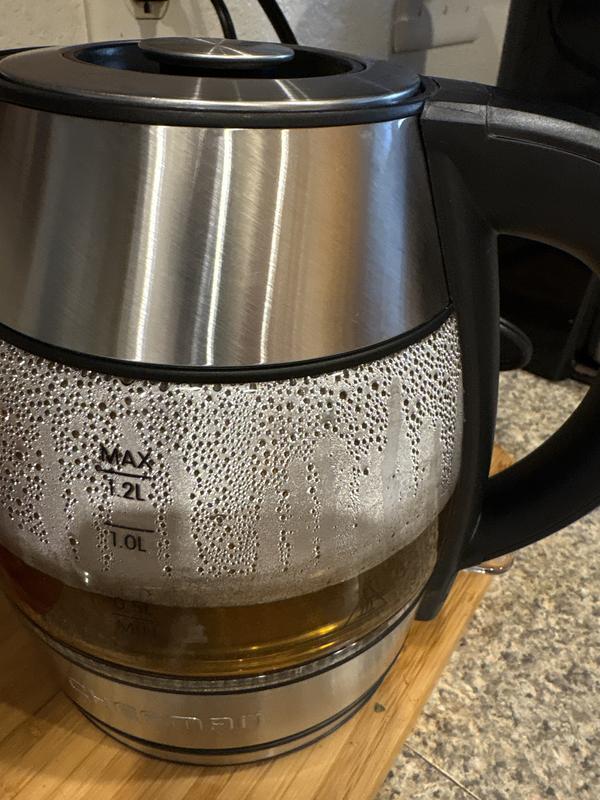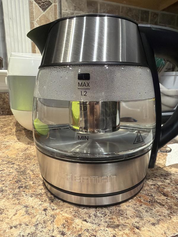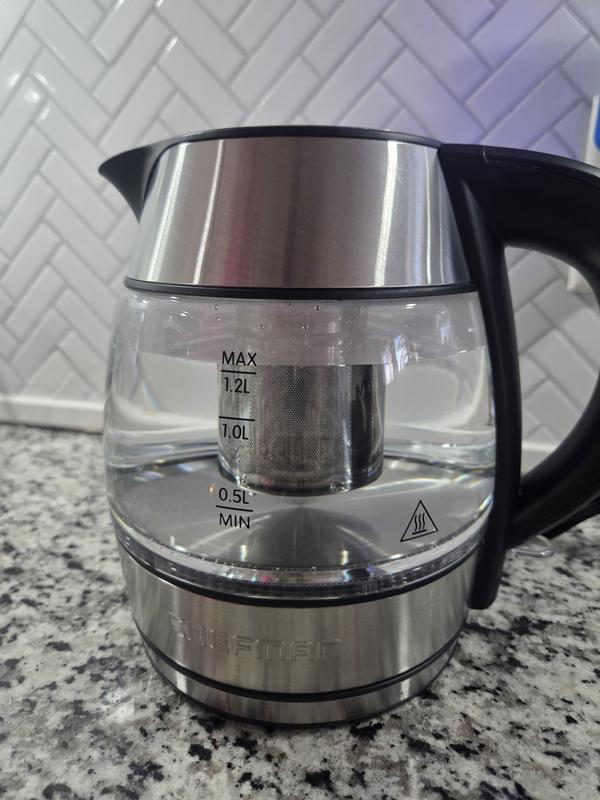 1.2L Rapid-Boil Glass Kettle with Tea Infuser & Removable Lid