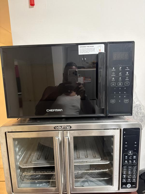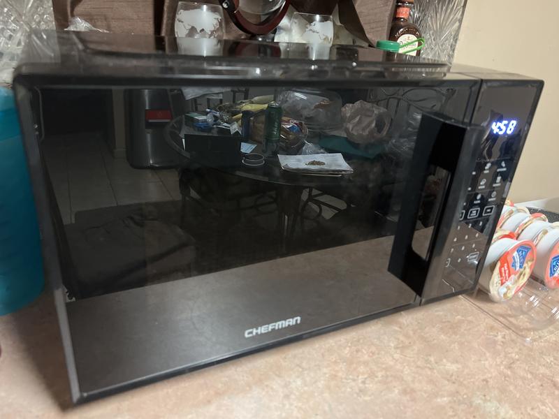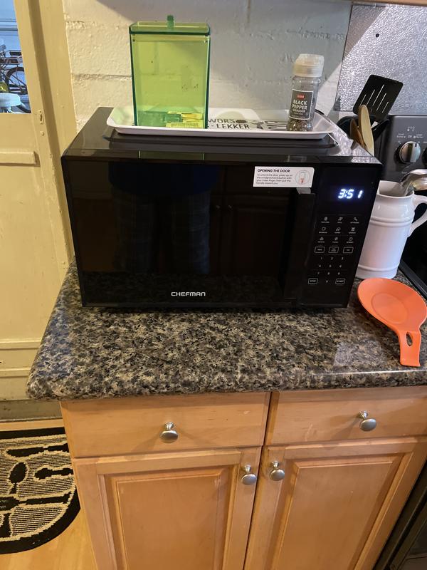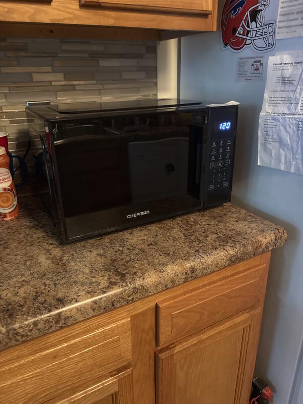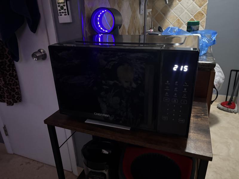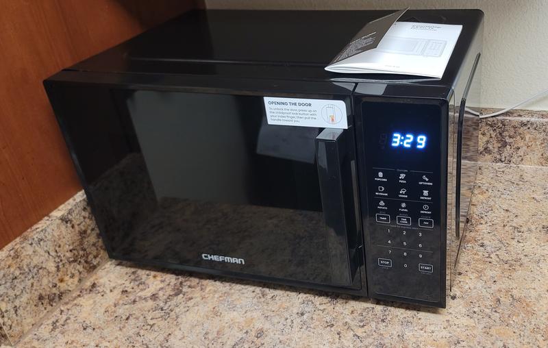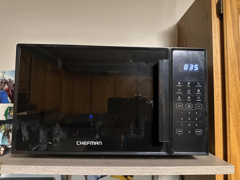 Just what an old bachelor needed. A clock display brighter than the sun. And a beep loud enough to hear outside the house. It has a much smaller footprint than my Panasonic microwave that just burned up after 40 years of daily use. I like the extra counter space. The Panasonic weighed almost 100 pounds. This Chefman weighs 26 pounds.