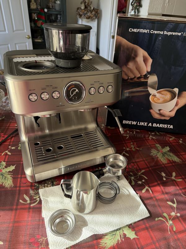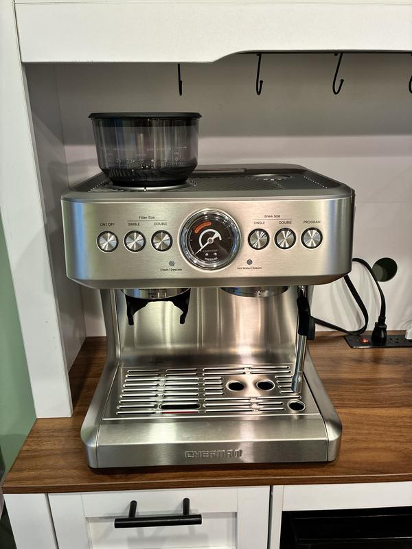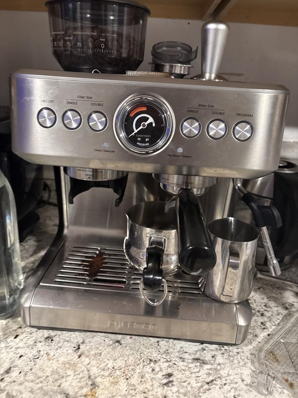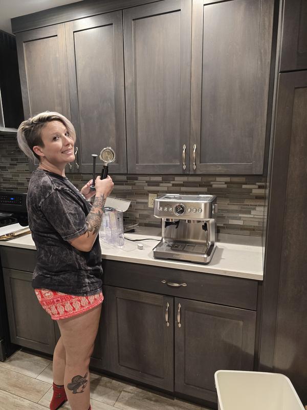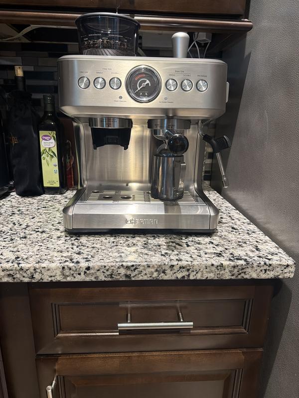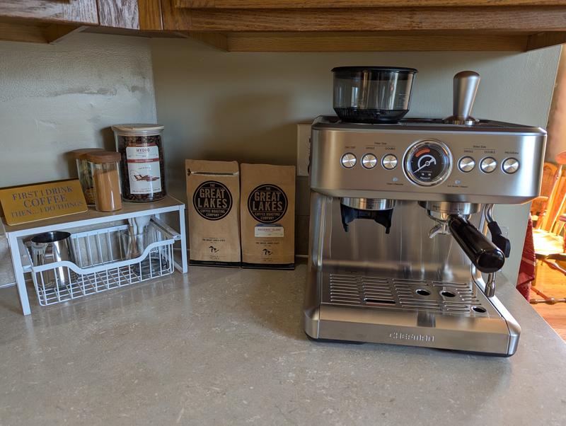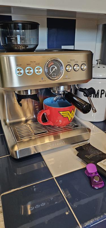 We’ve had a small espresso maker for a while and this machine takes it up a notch! From grinding and brewing to frothing the milk, it makes everything so much easier.