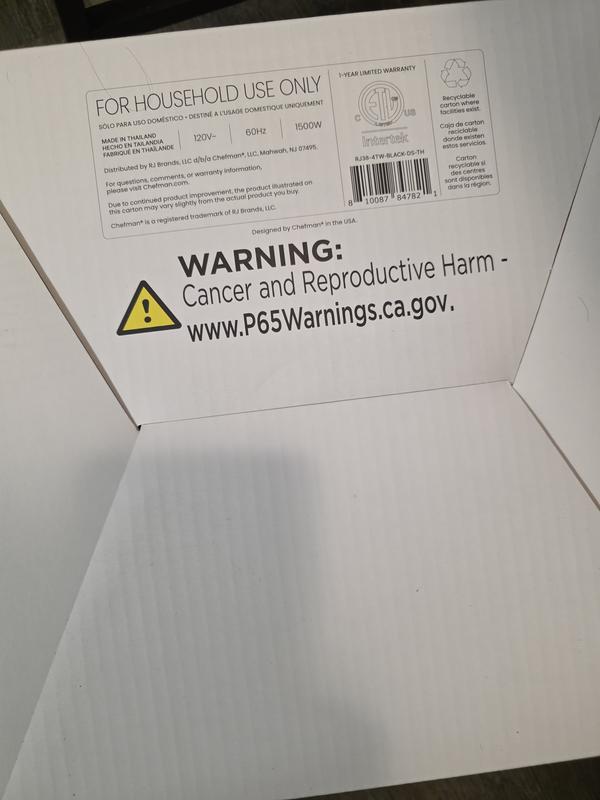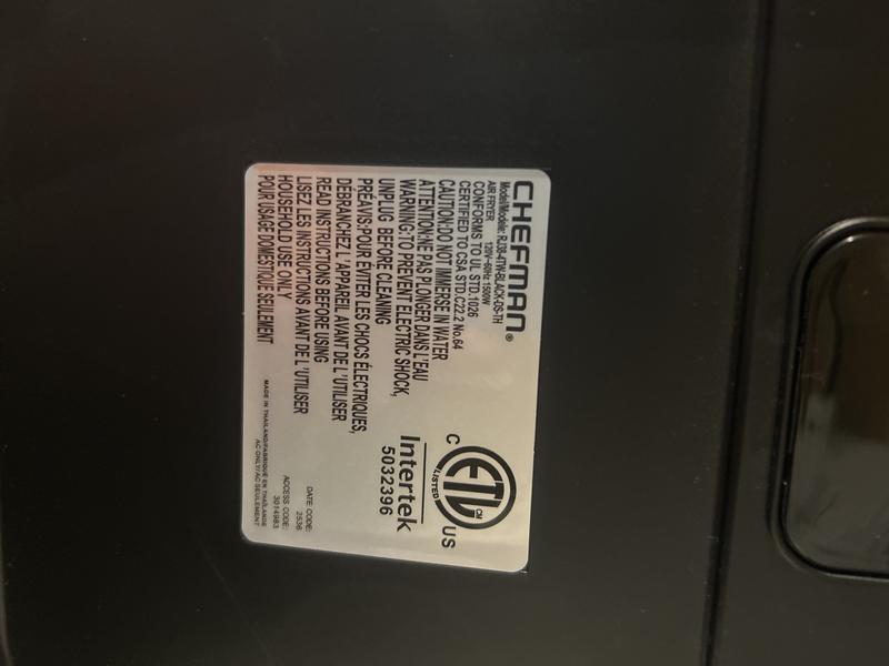 I got the air fryer and use the french fry setting on the first use. It burnt the french fries and the time that it shows to cook it is way too long. I just happen to open it even though there were still much time on the clock Also to do the warranty, The QR code used to register it did not work properly as it could not find the number on my box RJ38-4TW-black-DS-TH. It only let me use RJ38-4TW-black-DS. I don't know if there's a difference but that's an issue for Chefman not me. I still expect my warranty to be valid.