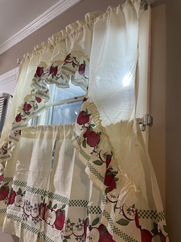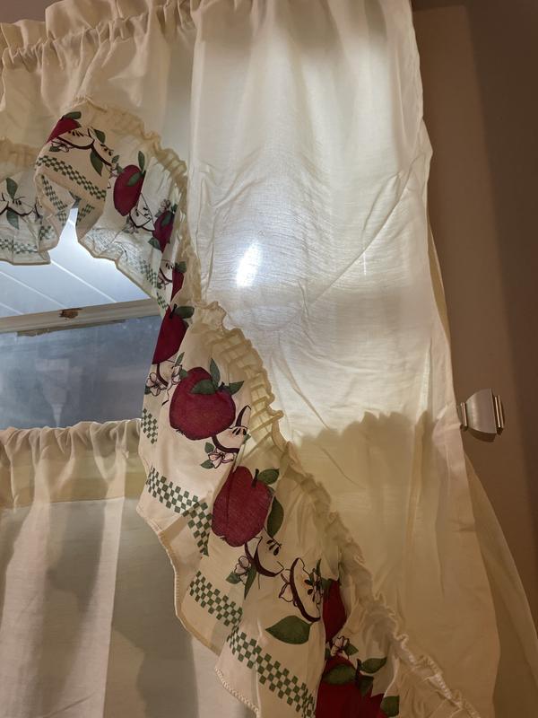 I bought this kitchen curtain and when I actually received it,it was totally the same color as advertised.This was the perfect color combination for my kitchen and it really matched with the kitchen painting.Looks nice and those apple image lining is just a bonus to the curtain.