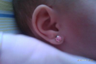 Very pretty earrings! The size was a little smaller than what I had in mind, but it looks great on my 3.5 yr old daughter. The stem was thin enough for it to slide easily in her ear piercings.