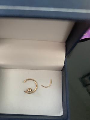 The hoop opens up and by the time you know it you end up loosing the little ball. Very disappointing. I probably got a pair someone returned because who would keep these earrings. Too much money for so poor quality.