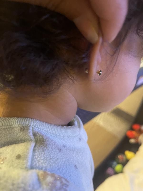 Purchased earrings to replace babies new piercing within a couple weeks one of the earrings was gone! We found the backing the ball was dent and wouldn’t secure the earring well. We lost her first pair in less than 2 weeks. Cute earrings but don’t recommend not made well after seeing all these reviews with same or similar issues.