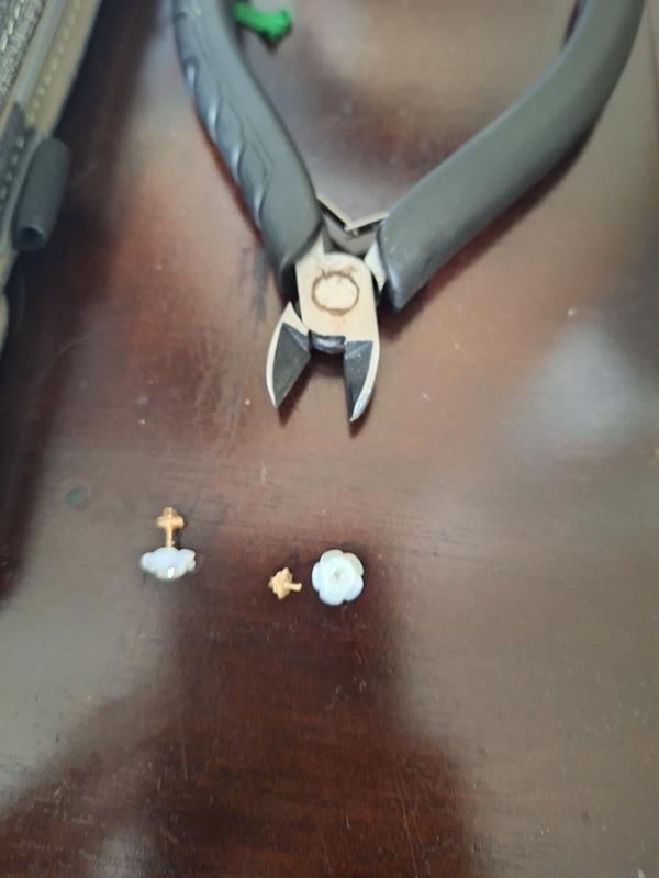 The white flower popped off on the second day, leaving the post in my baby's ear...she was in pain and we tried for 2 hours to get it off....it was im possible to get a grip....it required 4 people and a set of tweezers....my poor baby even bled....i am so frustrated....my wife is furious... this product should be taken off the shelves !