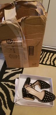 The description needs to be updated with the color of the studs. The shoes look different from the picture. Shoes came unbuckled and worn, with a scuff on the side of the shoe. It also runs large and is too big. I would need a half size smaller.
