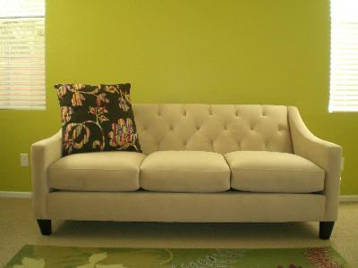 this tufted sofa is beautiful and sturdy; we ordered it in the slate color and it was exactly like the sample; comfortable and firm; would look great in any modern home