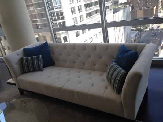 I have had this sofa for about 3 years in my formal living room but I think it is more comfortable then my family room couch from Raymour and Flannigan. It looks awesome in my Hollywood glam contemporary space. Very classy and elegant, And the material is so soft. I bought the slate color and it is the most perfect gray. I may purchase another one for a different room when completed. I love it! And I searched for a long time for the perfect sofa and I bought it sight unseen online!