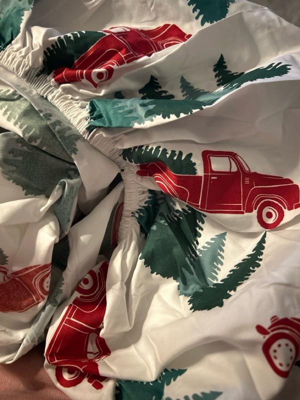 I was blow away but the quality of these sheets. They are very soft and comfortable. The size fits just right and doesn’t slip around. The design is very cute and perfect for the holiday season.