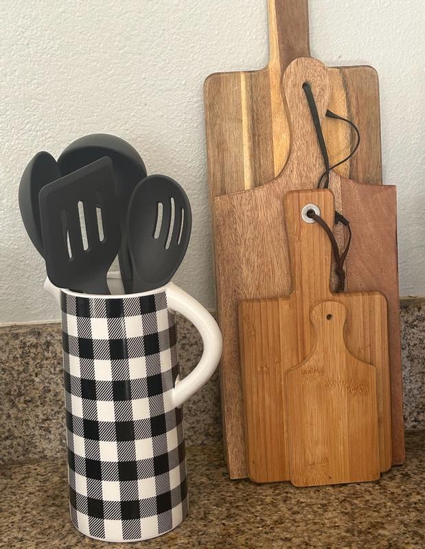 I’m really pleased with this kitchen utensil set. They are sturdy and get the job of their metal equivalents done with ease. And they are so much easier to wash either by hand or in the dishwasher. They’ve held up well as our family is large and uses all four pieces everyday. I’d recommend them.