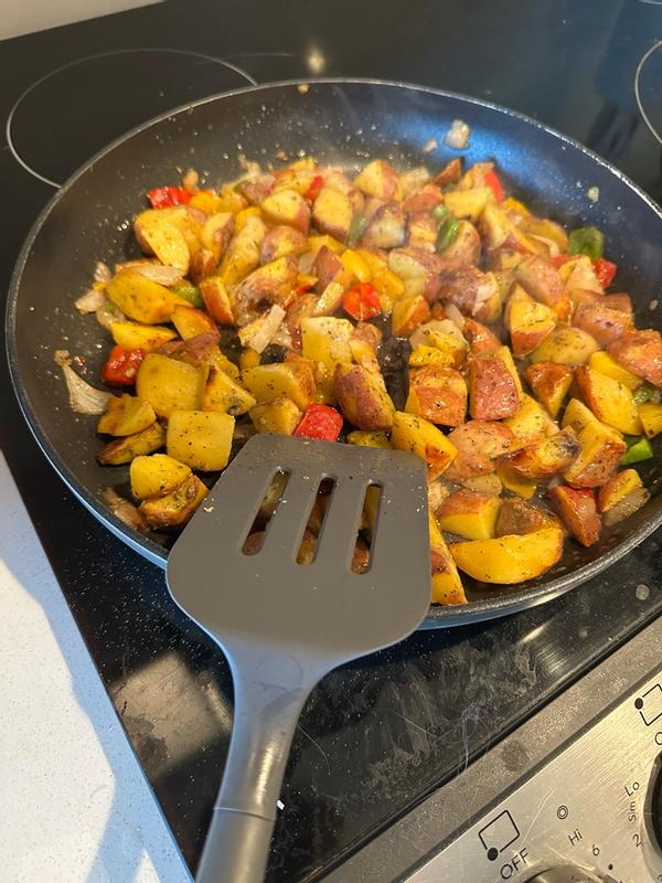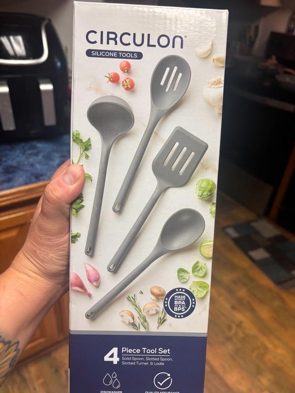 I recently picked up the Circulon 4-piece silicone tool set, and it’s quickly become a go-to staple in my kitchen. The set includes a slotted turner, solid spoon, slotted spoon, and a ladle — all the basics you need for everyday cooking. What stands out immediately is the build quality. The tools feel sturdy and well-balanced, with silicone heads that are flexible enough to get into the corners of pans but strong enough to handle heavier foods. They’re heat-resistant (up to 450°F), which means I can use them confidently with nonstick cookware without worrying about scratching the surface or melting the edges. The handles are comfortable to grip and don’t get hot during cooking, which is a nice touch. Cleanup is easy — a quick rinse or run through the dishwasher and they’re good as new. If I had one minor gripe, it’s that the handles could have a slightly more ergonomic shape for long cooking sessions. But that’s a small thing in an otherwise excellent set.