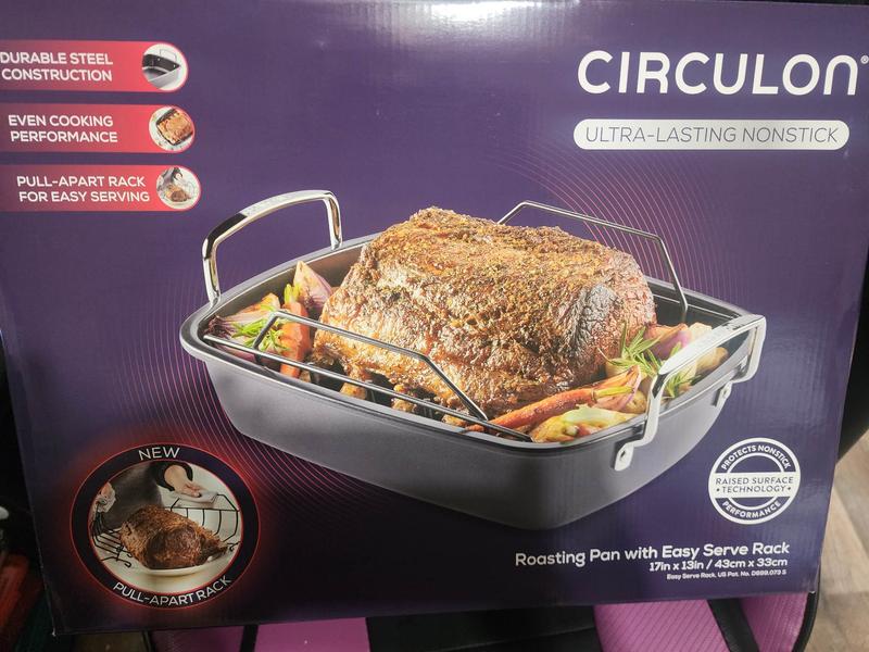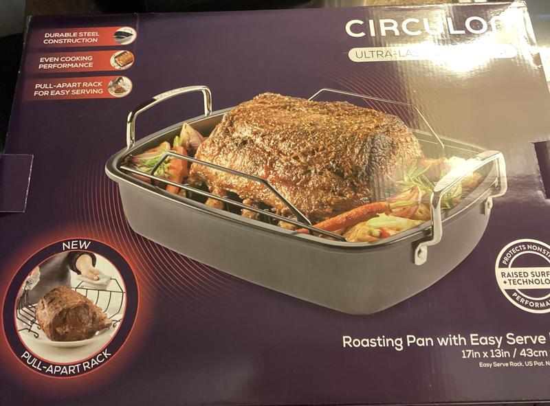 Carbon Steel 2 Pc. Ultra-lasting 17" x 13" Nonstick Roasting Pan with Easy Serve Rack