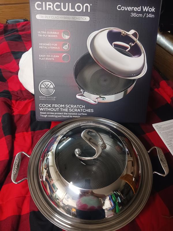 Clad Stainless Steel 14" Induction Wok with Glass Lid and Hybrid Steelshield and Non-stick Technology