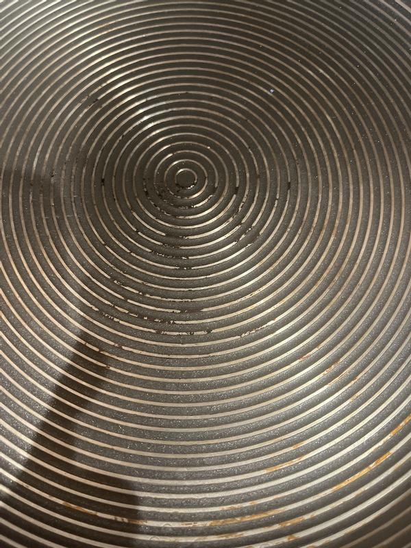 Great looking concentric circle pattern. Easy to clean and has not discolored like my other pricey Tri Ply. Superb heat distribution!