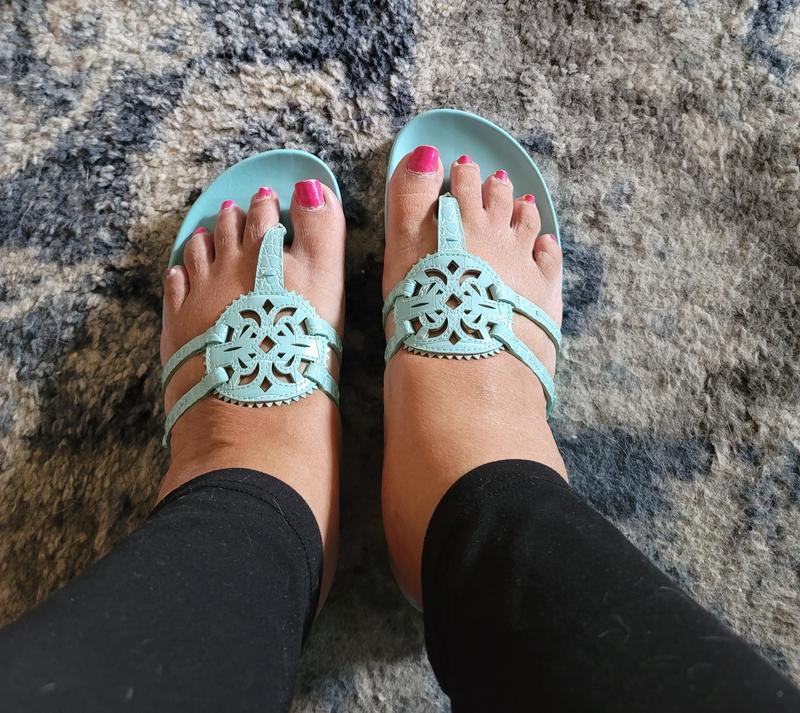 I Received a pair of Jules Sandals. These Sandals are very pretty with vibrant color with a little bit of fancy on the top of them so you can wear them when you dress up or for casual. This sandal is comfortable it has a soft sole. I would love to get other colors in them. I would highly recommend this product.
