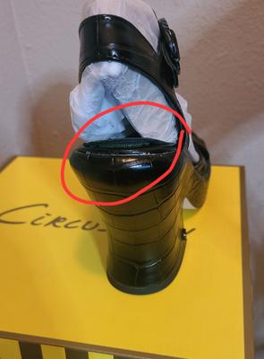 These Peony from Circus NY. Has alot of sexiness in them. They are very clunky but i love them. They are very easy to get on and fit me perfectly. These even know they are dressy and have somewhat of a heel they are easy for me to wear. I wear these out on special occasions and they are very comfortable. They don't hug my feet at all. The heel gives enough oomph to make these look great. I love these shoes. They are quality made, you can tell by the stitching and the hardiness of these.