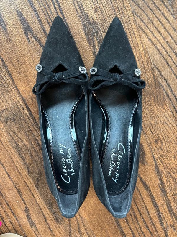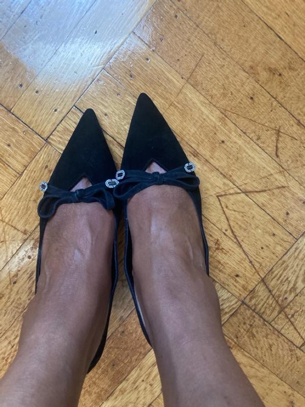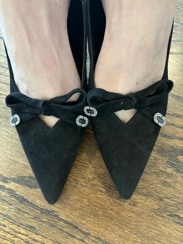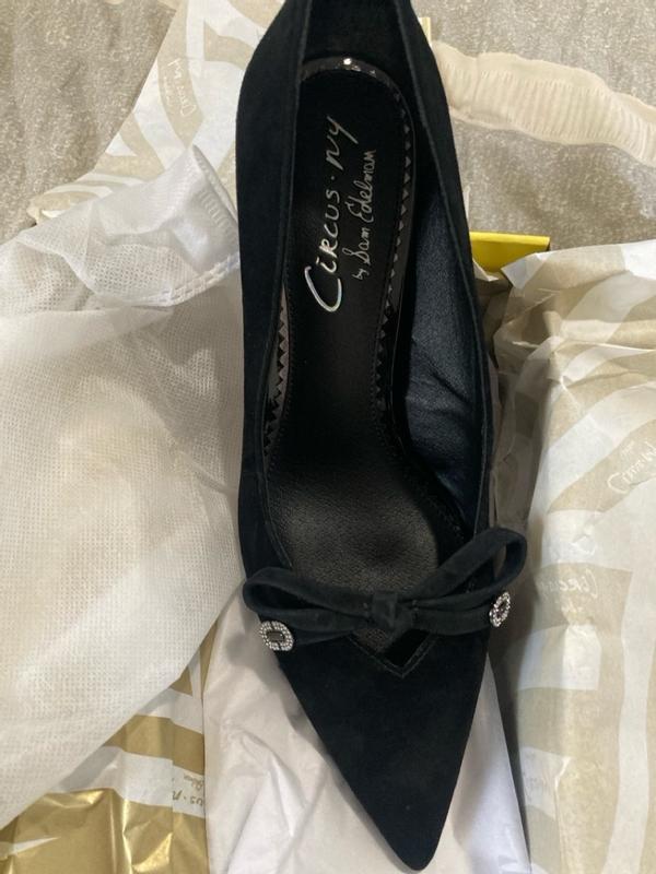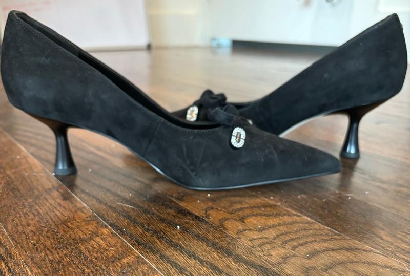 Absolutely beautiful shoe with accents on the bow. The heel height is perfect especially if wearing for extended amount of time.
