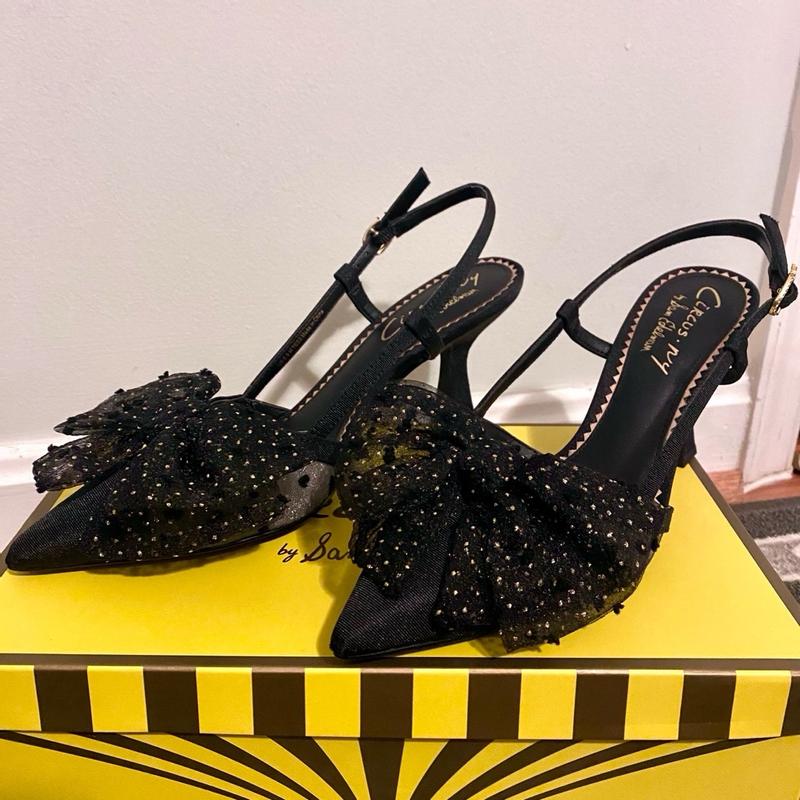 These heels are so pretty in person. They are comfortable and true to size. I love the bow details! So happy with my purchase