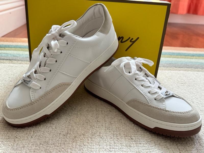 I have been in search of a sneaker that has Style, a dark gummed sole and is LEATHER. I tried the NIKE, not leather. This Sam Edelman sneaker did state in description upper leather… but inside shoe under the tongue states man made upper. I knew immediately when I took them out of box they were manmade vinyl like sneakers. I’ve always worn sneakers adidas, Nike,Puma, Sperry and will only wear leather due to how they wear. I love when leather shoes, sneakers, loafers, boots wear in:they get mushy and soft and kinda conform to your feet. Be 70 soon, still working as an RN and need a good shoe at work. I was hoping these would fit the bill. I have a bad bunion which needs the softness and forgiveness that leather or canvas provides. As to the look and fit, love the look with the dark gummed sole. The fit is true to size but they will never be comfortable. Macys ,whomever proof reads shoe descriptions needs to update and remove leather uppers. Unfortunately, they’re being returned.