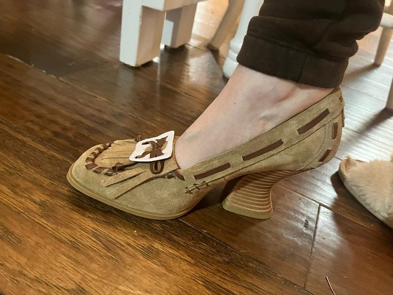 This is one of the most fashion forward pieces of footwear that I own. It's definitely a riskier heel for me, and is out of my comfort zone, but I adore it. First of all, the material is a high quality suede like material. It's very durable and wears well. I was very impressed with the packaging. It looks like a high quality shoe and was packaged with the utmost care. I do like that this shoe can be dressed up or down for work or for social events. The best way to describe this shoe is a elegant loafer heel. I can imagine a stylish, fashion forward professor wearing this to a lecture. I had a business event that was business casual and it went perfectly with my outfit. I wore a white embroidered button-down shirt with olive colored sweater vest and tan suede pants. This completed the look perfectly. Since I'm a little short, this gave me the perfect height with a classy loafer type shoe. I got so many compliments that day. While I absolutely adore this shoe and can see myself wearing it to all my social or business events, it's not super comfortable. The shoe soles are quite hard and after a couple of hours of wearing it, my feet did start feeling it. I had to take it off for a little bit to let my feet relax before putting it back on. This is probably easily solved with a cushioned sole that you can buy at any local store and I will be trying that next. But the shoe by itself is not the most comfortable. Surprisingly, the heel is actually about 3 inches and even for me, was quite easy to walk in. I'm not the best at walking in heels, but I had no problem. Overall, I'm very pleased and I absolutely love these heels. They are my new favorite. That being said, they are a little uncomfortable because of the hard sole. A cushioned sole would fix this easily and for a few dollars would make this the perfect shoe. I cannot help but recommend these heels.