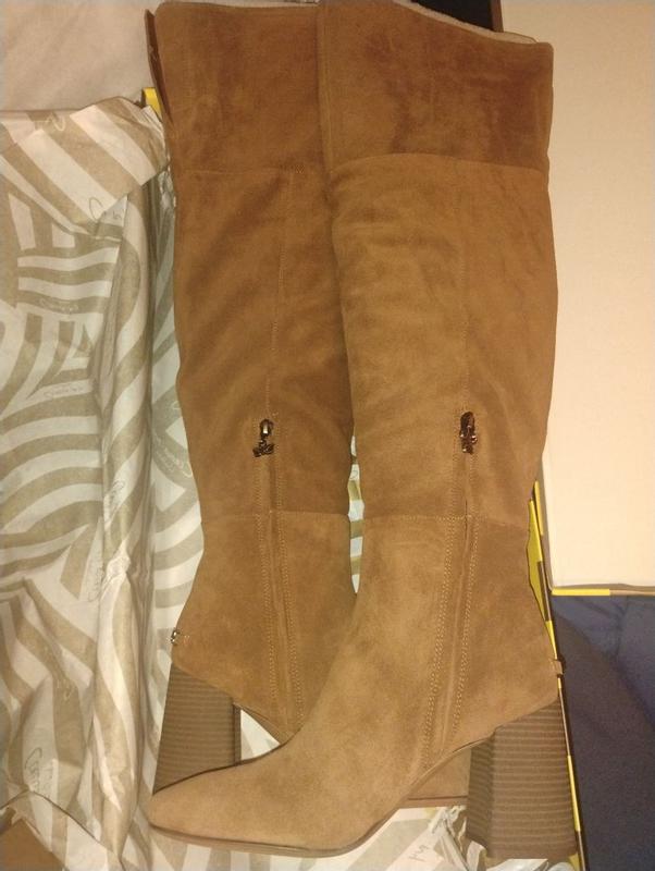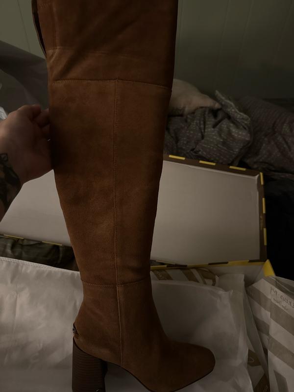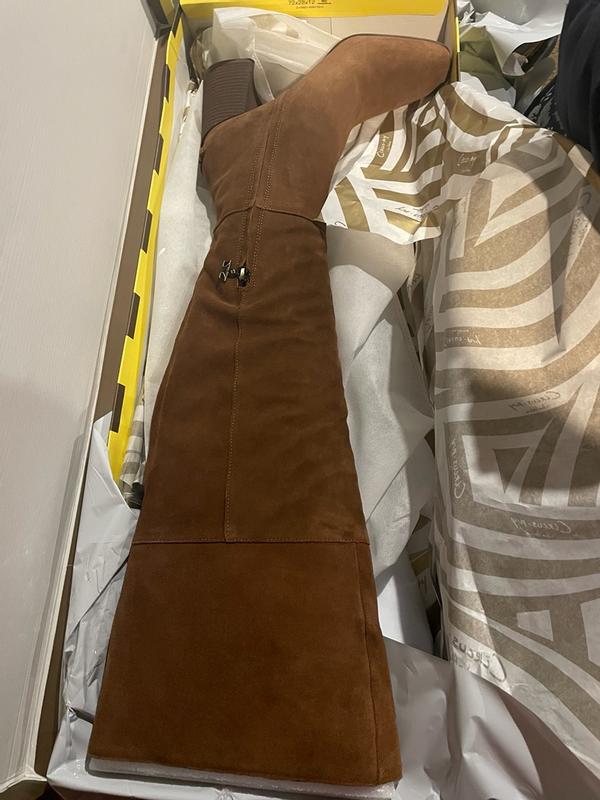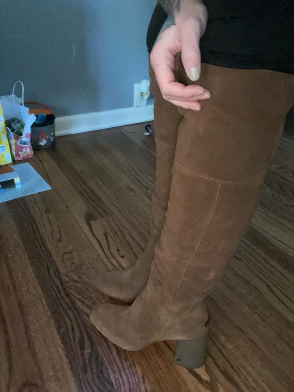 From the moment I slipped them on, the Brigid boots made a statement. The smoothnessof the upper boot gives them a polished, elevated look. The design features a sleek finish, a square toe, and a high block heel, so they immediately feel dressy . They’re tall and comfortable. They're technically over the knee, which gives them drama, especially when paired with a skirt or tucked‑into slim trousers. These boots fits perfectly.