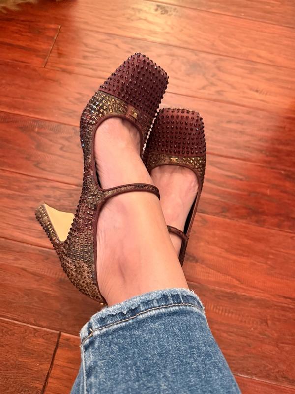 This is a fun pair of heels to add some glitz and glam to any outfit! They run true to size and the box toe leaves plenty of room without making my feet feel squished. I like the wide heel, and I appreciate that the sparkle details weren’t left out there. The deep burgundy detailing throughout the shoe is beautiful and they feel well made. I plan to get a lot of wear out of these this fall!