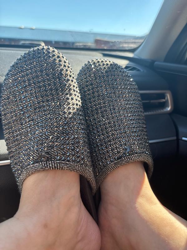 I LOVE these shoes, they are just adorable! They are a medium-grey with a stripe pattern and covered in lots of sparkles, just the way I like my shoes! They are the perfect blend of cute and comfy, and they go with just about any comfy fall outfit! I love that they slip right on and look nice dressed up or dressed down! They are like a VERY upgraded, much more fashionable slipper! This is definitely a type of shoe I would have picked out at the store for myself! I will say, they are a less comfortable than other similar shoes I have, they do not have much comfort or support inside the shoe! Overall, I really like them and see myself wearing them quite a bit! I would love them in a brown and black color!