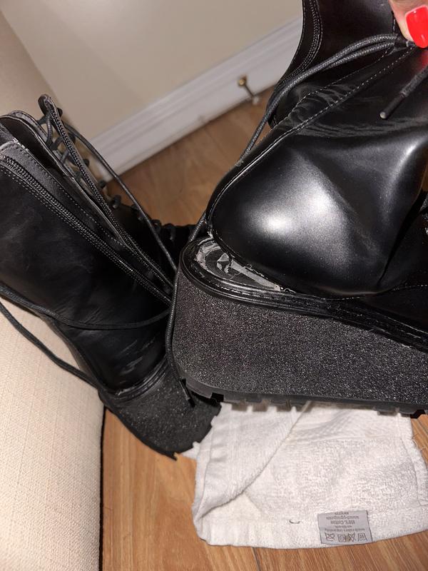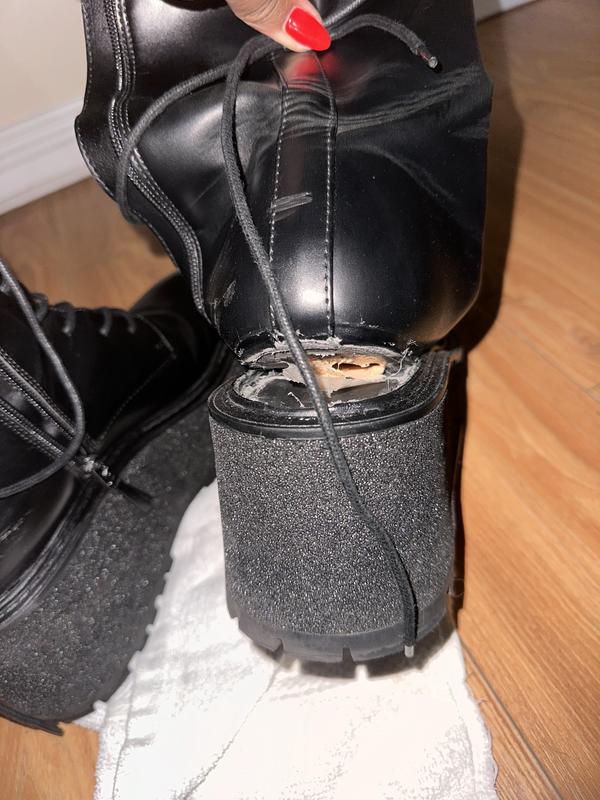 I purchased these boots in November. Probably wore them 5 times before noticing the platform detached from the boot shaft. I hope Macy's will accept them back.q