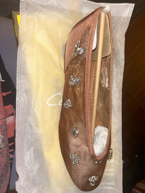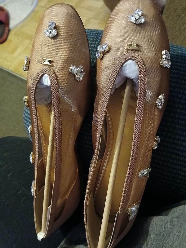 I received these Tina Jewel mesh ballet flats in the color Cinnamon Sugar for free in exchange for my honest review. I thought these shoes were well made with nice attention to detail. They are very comfortable and breathable flats that have cushion to the soles. The color is beautiful and the jewels are placed purposefully on the outward facing sides of the flats. These would look great with most outfits. These flats would make a great gift and I would recommend these to my friends.