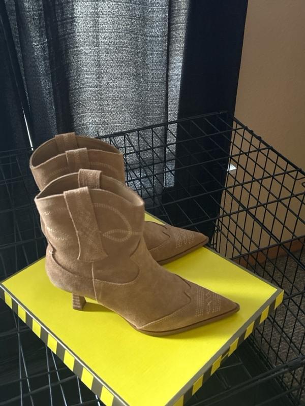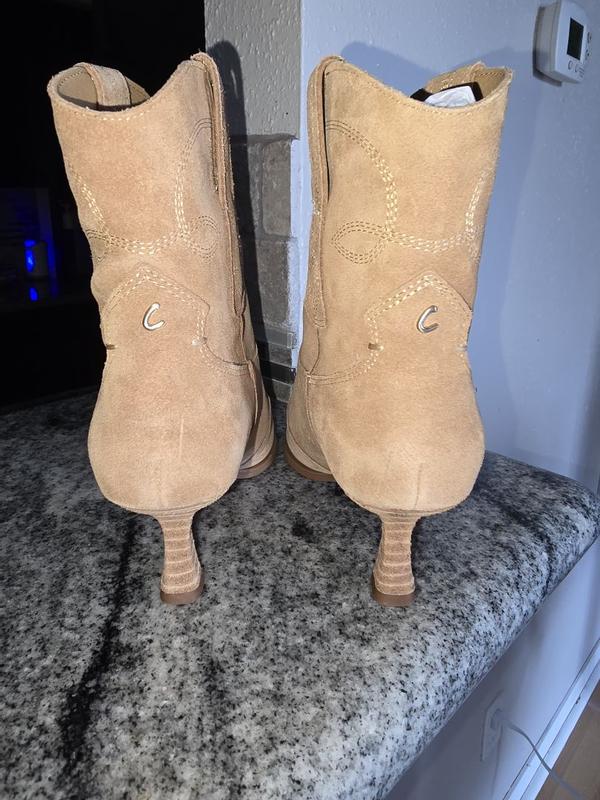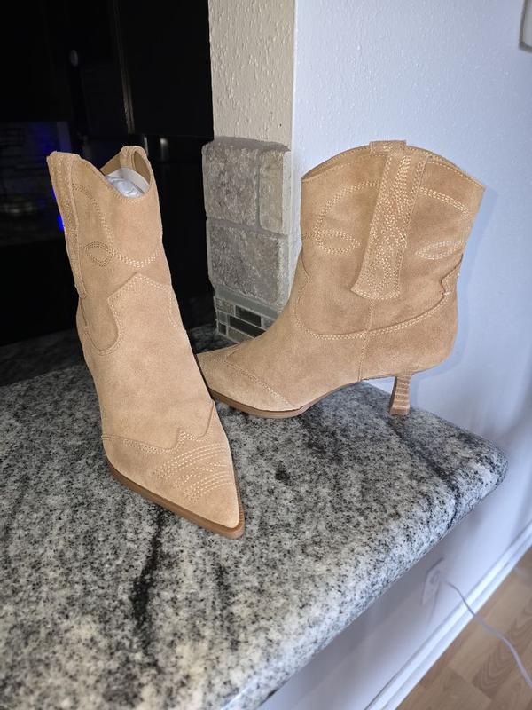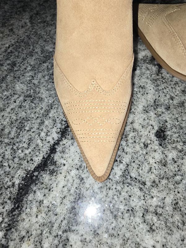 These boots are so comfortable and cute! I love the suede, definitely need to look into a scotch guard with the rain coming. The fit is great. I love the low heel I do wish it was bit wider but overall love them