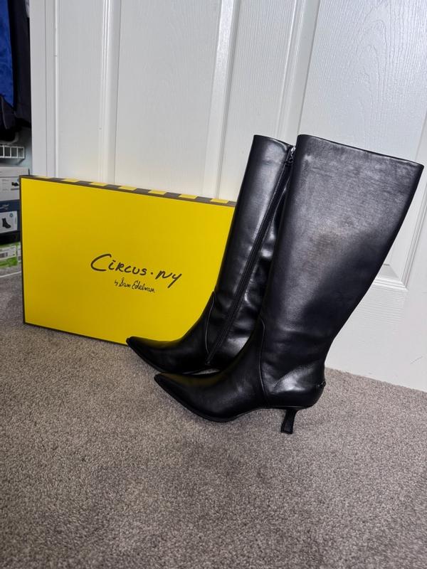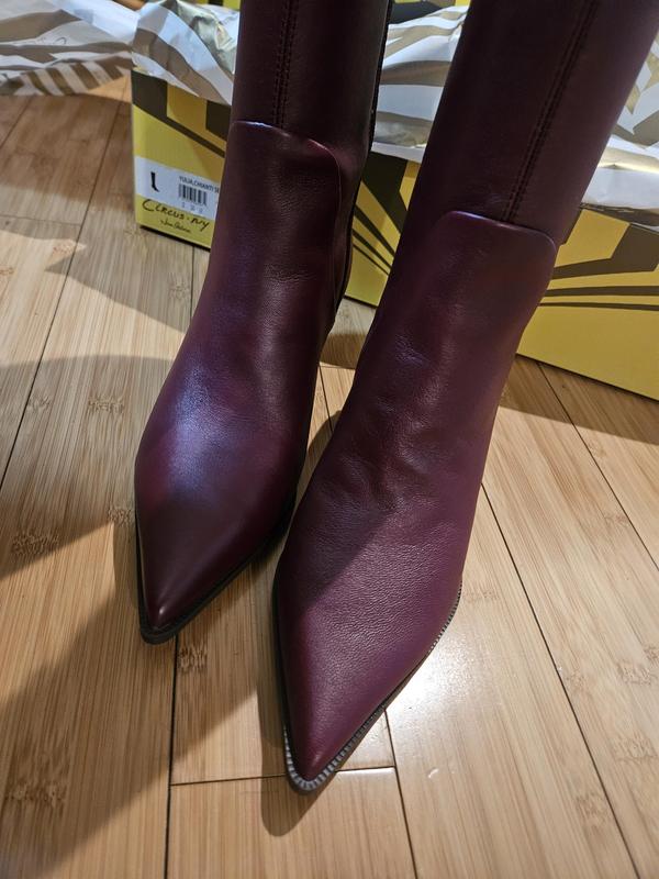 Bad quality not leather boots, does not dir around calfs sent them back to store
