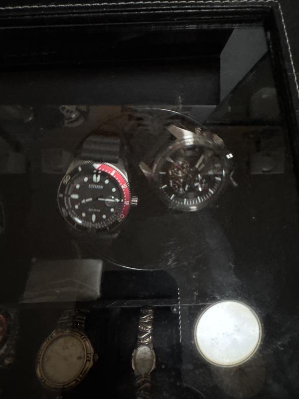 Case: round stainless steel case; 43mm; mineral crystal; black bezel