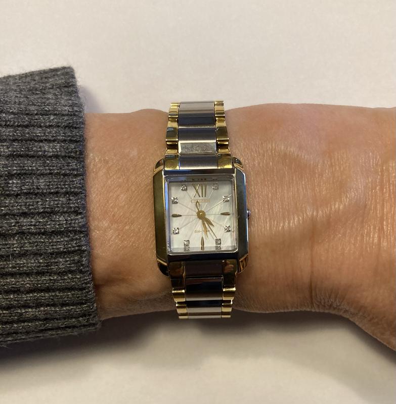 The watch is beautiful. I get comments about it whenever I wear it. It is the perfect size for my small wrist. It is my first eco-drive watch but I look forward to not having to change the battery.