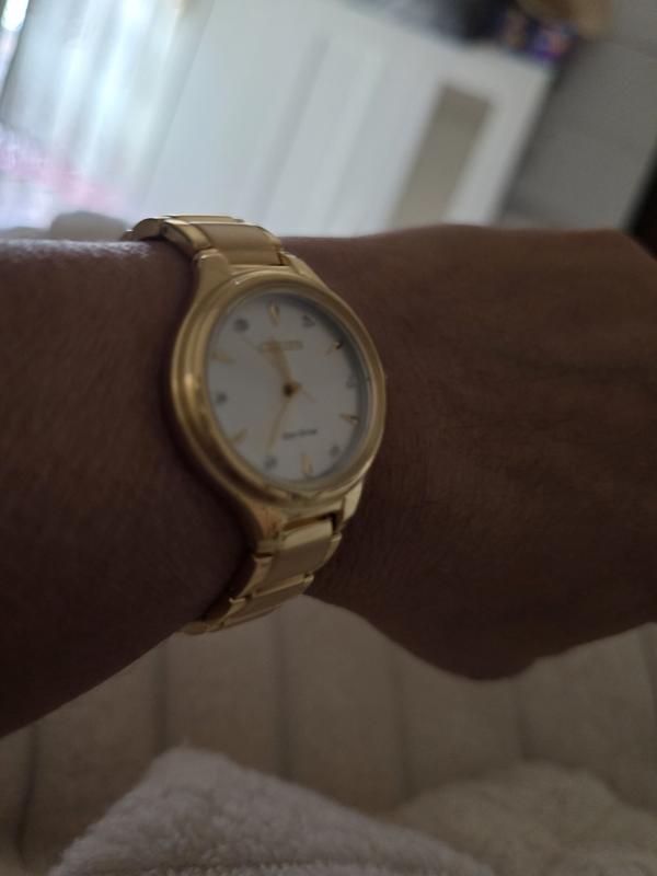 I just bought this Citizen Eco-Drive watch for my daughter for her 35th birthday. It is absolutely stunning. You can dress it up or dress it down. It goes with gold or silver and it has real diamonds. She absolutely loved it! I love the fact that you never have to get batteries for it. It has a smaller face than she was used to, but I wasn’t crazy about the larger faced fashion watches they are selling these days.