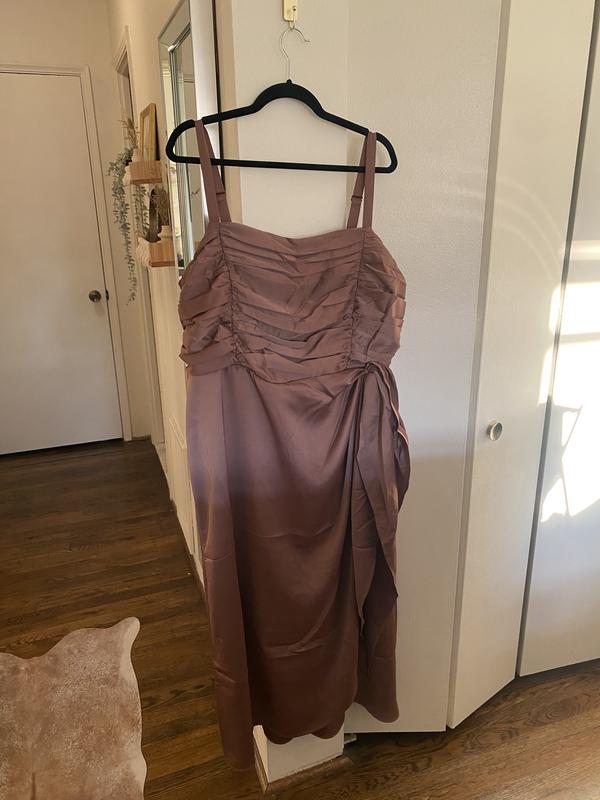 I got this dress to potentially wear for an upcoming wedding. The dress feels comfortable on and I was quite happy with the fit. I'm usually between sizes and went with my bigger size. I ordered the antique rose color--which is a lot more mauve/dark in person, almost brown in certain lighting. I was a bit surprised since the dress looks much more pale pink in the photos. I will also need to iron/steam the dress--which hopefully I can get the pleats to sit right.